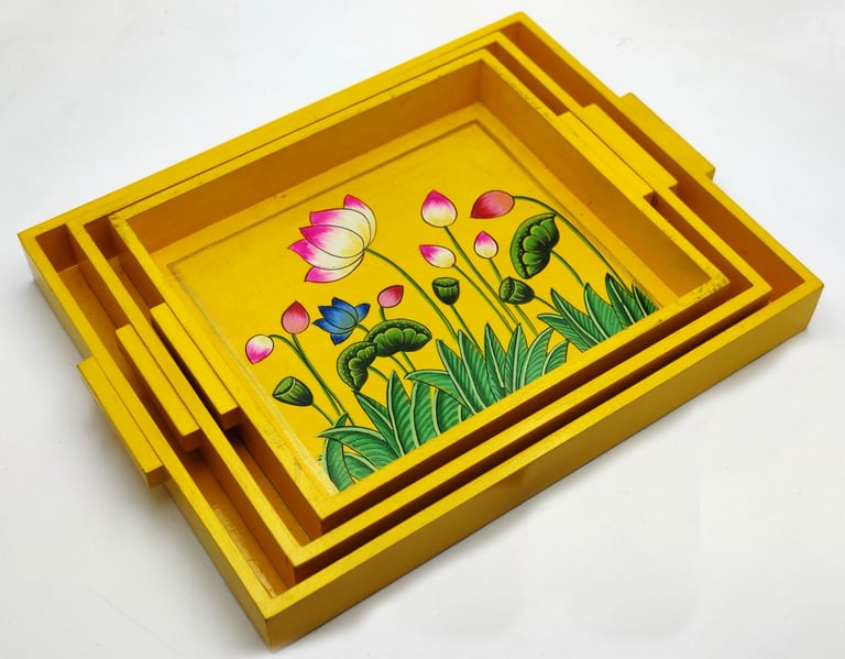 These trays and boxes are hand-painted by folk artists trained in traditional Rajasthani and Madhubani styles. Each stroke, each motif is freehand — celebrating flora, fauna, festivals, or abstract elegance.